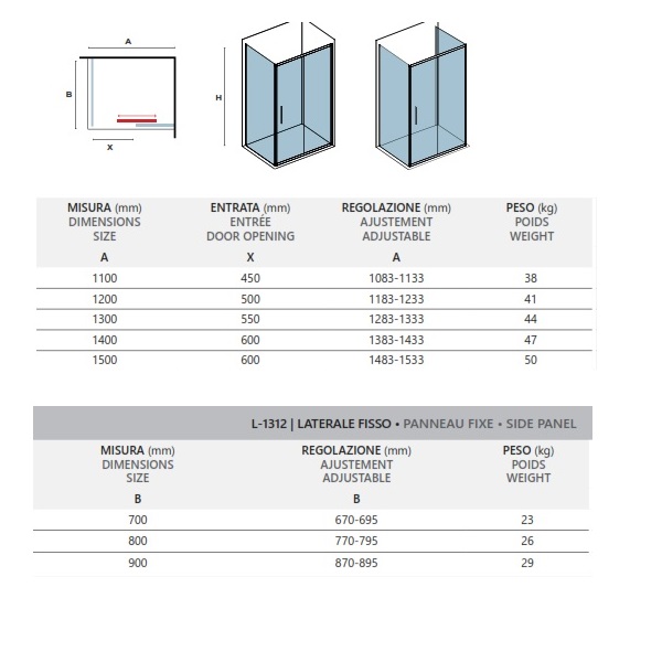 *ВАЖНО: Първият размер е на страничното стационарно стъкло, а втория на предния параван с плъзгаща врата.