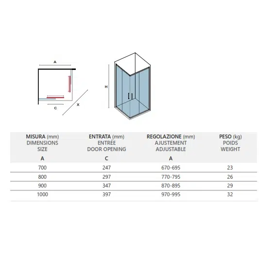 Основни характеристики на Душ кабина IZY SIDE 100: