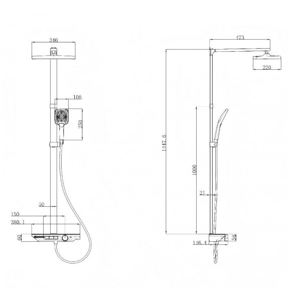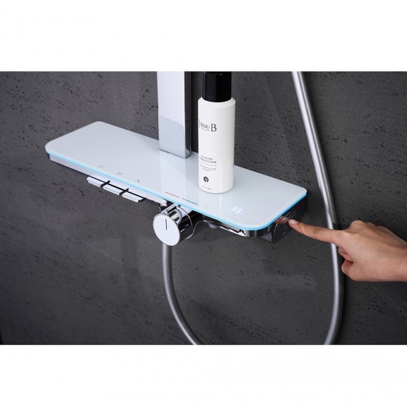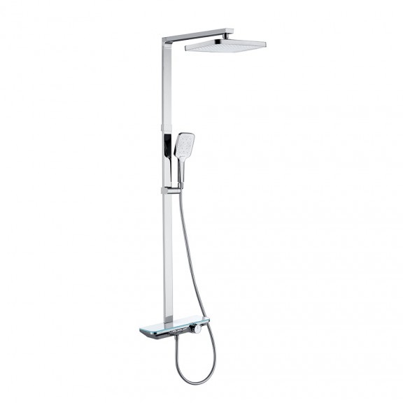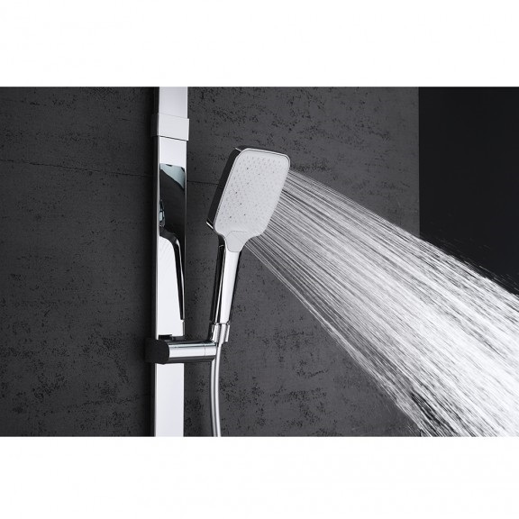 Душ система ESTE се състой от стационарен душ с 1 функция, подвижен душ с 3 функции и смесител в цвят хром.