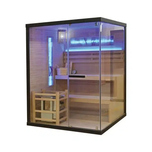 Финландска сауна LUXOR 2 съчетава традиционното удоволствие от сауната с модерен комфорт и елегантен дизайн – идеална за до трима души. Тук ще се насладите на успокояваща топлина, естествени материали и атмосфера, която ви кани да се отпуснете.