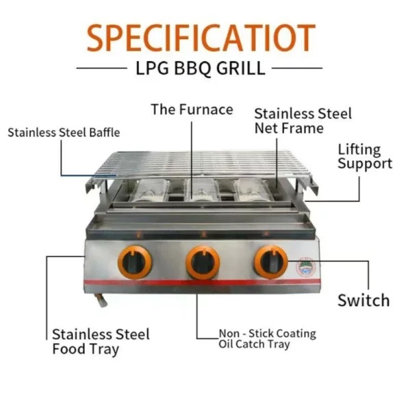 Газова скара KDM03 е оборудвана с 3 инфрачервени горелки, устойчива е на много високи температури и има много бърз пренос на топлина. Регулируема е по височина за най-равномерно готвене и е снабдена с тава за събиране на мазнини, която не прилепва. улеснява почистването. Може да се използва както на закрито, особено в ХОРЕКА зоната (ресторанти, камиони за храна и др.), каравани, така и на открито, къмпинг, барбекю, партита на открито. Изработена от устойчиви материали, скарата е много издръжлива.
