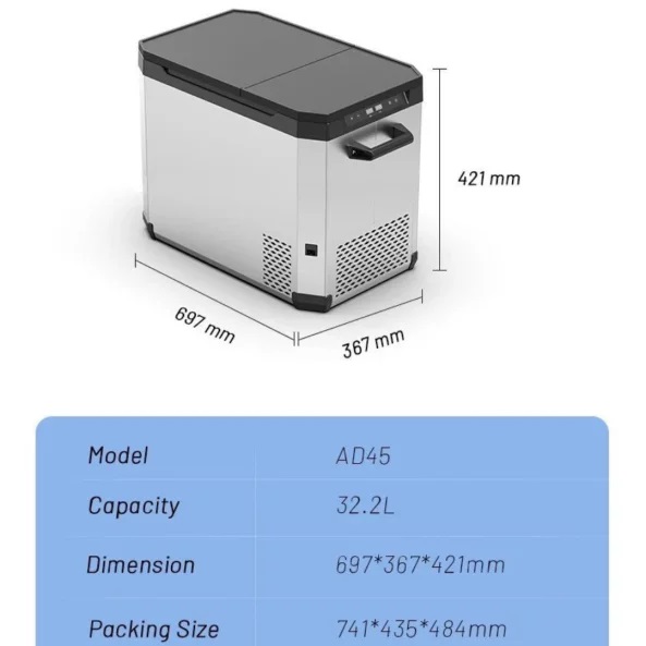Хладилник за автомобил Smart Cooler 32.2л може да се използва както за стандартно охлаждане, така и за замразяване, благодарение на отличната му охлаждаща способност, дори при екстремни външни температури, като същевременно има ниска консумация на енергия. Той е издръжлив, с характеристики като подсилени ъгли, панти от неръждаема стомана и здрава изолация на капака. Автомобилният хладилник осигурява висока охлаждаща ефективност с нисък разход на енергия. Благодарение на ефективната компресорна система, уредът работи безпроблемно дори при неравни пътища – давайки ви свободата винаги да разполагате с любимите си храни и напитки, свежи и на оптимална температура. Този модел автомобилен хладилник е идеален за пътувания с кола, каравана или тежкотоварни превозни средства. Със своя модерен и практичен дизайн, той е лесен за пренасяне, елегантен и изключително надежден.