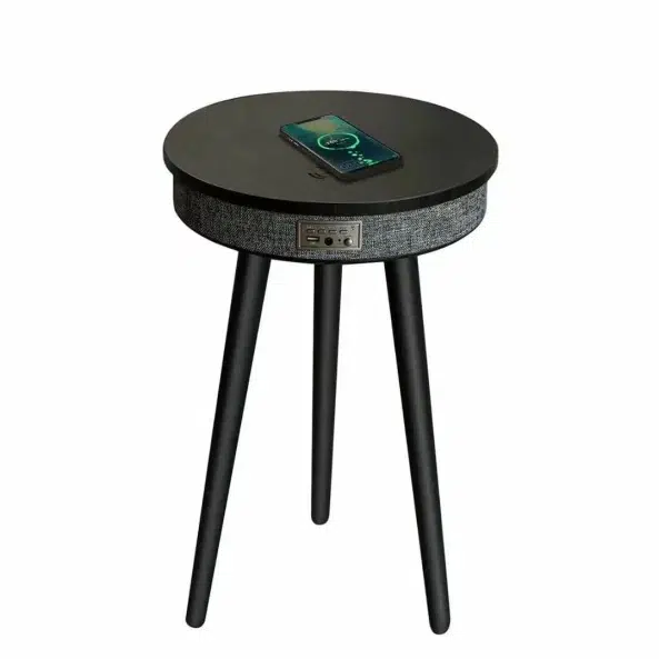 Холна маса с Bluetooth ще обогати пространството ви с тази интелигентна черна маса, която съчетава съвременни технологии с елегантен дизайн. Наслади се на бърза свързаност чрез Bluetooth 5.0, аудио система 20W за висококачествен звук, безжично зареждане 15W за твоите устройства и вградена батерия 9000mAh за продължителна употреба.
