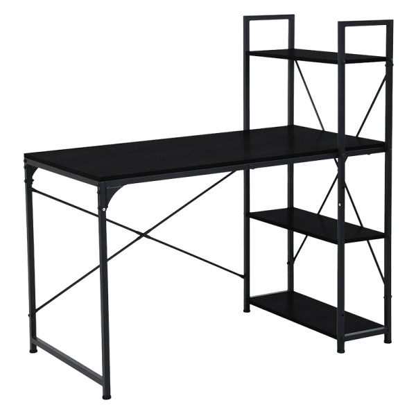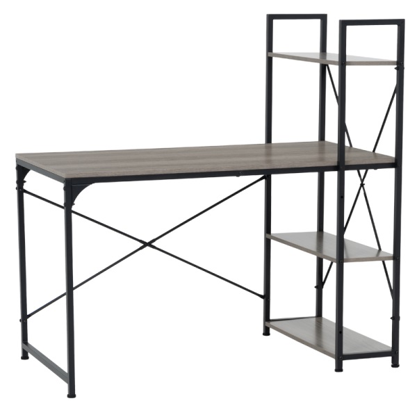 Компютърно бюро TUZLA съчетава модерен вид с функционален дизайн. Практичните му размери предлагат удобна работна повърхност, а компактната конструкция позволява лесно разполагане във всяко помещение. Вградената етажерка отстрани осигурява удобно място за съхранение на папки и канцеларски материали. Посоката ѝ (лява/дясна) се определя при монтажа, като укрепващите кръстосани елементи се позиционират от обратната страна.