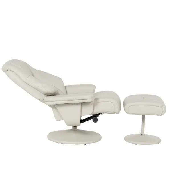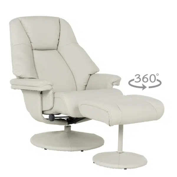 Кресло ANA с табуретка осигурява изключителен комфорт и пълна релаксация у дома. Меката тапицерия, широките подлакътници и ергономичният дизайн са създадени за максимално удобство. Функцията за наклон на облегалката и въртене на 360° позволяват адаптиране според личните предпочитания, а отделната табуретка допринася за истинска почивка. Основата на креслото е стилно облицована с еко кожа, която допълва визията и улеснява поддръжката.
