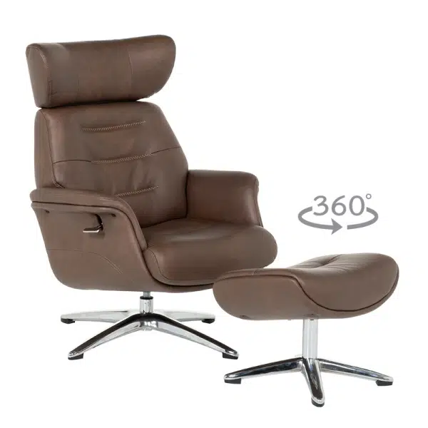 Кресло TEDY с табуретка впечатлява с елегантен силует, висока облегалка и изключителен комфорт при всяка позиция. Разполага с функция за наклон на облегалката и плавно въртене на 360°, а меката тапицерия в съчетание с ергономичния дизайн създава усещане за пълна почивка. Масивната основа е изработена от хромиран метал, който придава модерен вид и гарантира стабилност.