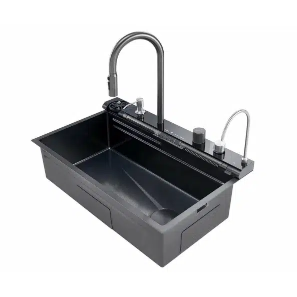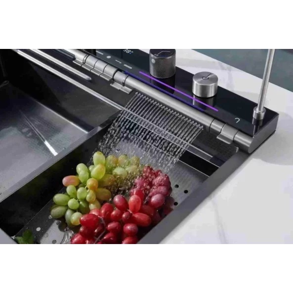 Мивка за кухня Smart Heater 9 е изработена от здрава и устойчива на корозия неръждаема стомана. Тази многофункционална мивка предлага не само функционалност и устойчивост, но и модерен естетичен дизайн и удобни аксесоари, които ще направят кухненските дейности по-лесни и по-ефективни. Има вградена система за измиване на стъклата, което улеснява почистването и изсушаването им ефективно. Предлага се и с вграден дозатор за сапун, така че винаги ще имате лесен достъп до сапуна, от който се нуждаете, за да измиете ръцете си или чиниите в кухнята. Освен това мивката включва и кран за пречистване на водата, който ви позволява да получавате пречистена вода директно от мивката, без да е необходим отделен филтър.
