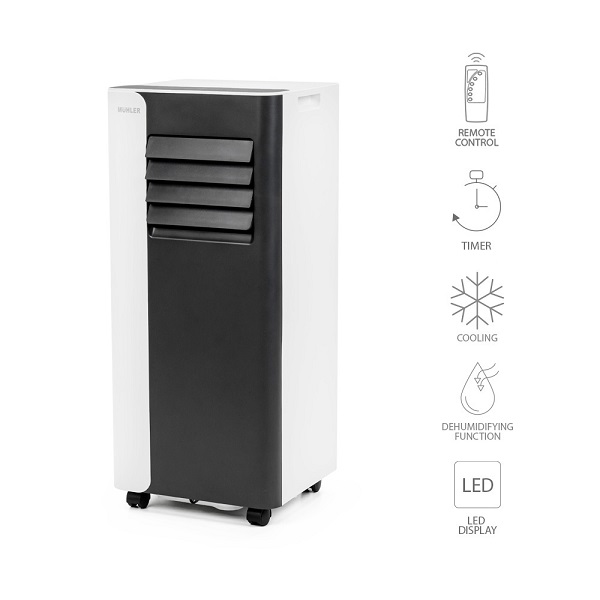Мобилен климатик MPAC70-C е с колелца за лесно придвижване и дистанционно управление.
