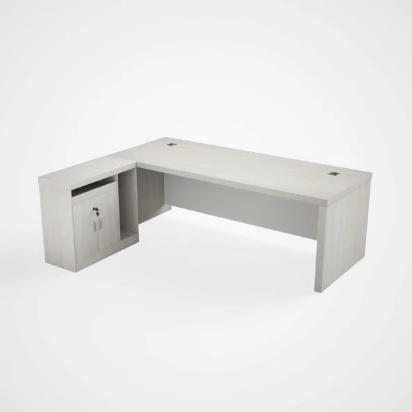 Офис бюро МВ13 е елегантно и функционално решение, идеално за модерно и добре организирано работно пространство. Включва отделения за съхранение, както и заключващ се шкаф за по-добра сигурност на документите. Това бюро е перфектно за ръководни офиси, осигурявайки елегантност и функционалност в едно професионално работно пространство.