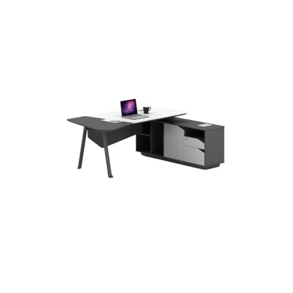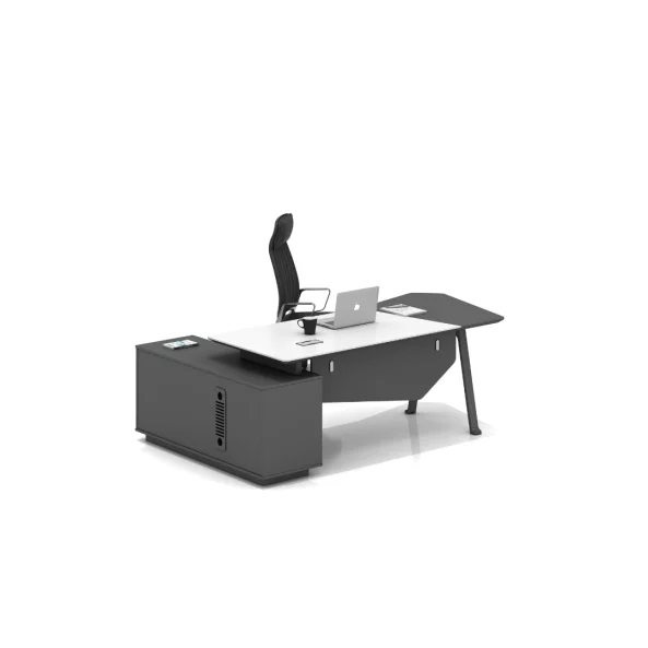 Офис бюро TR112 с него ще подобрите функционалността и стилa на работното си пространство, а допълнителният шкаф с чекмеджета отстрани ви дава възможност за повече съхранение на вашите вещи. Плотът от 25 мм меламиниран ПДЧ предлага издръжливост и елегантен вид, докато металните крака добавят модерен контраст и осигуряват отлична стабилност. Тази комбинация от ъглово бюро и шкаф е идеална за създаване на организирано, функционално и модерно работно пространство, перфектно за всяко директорско бюро.