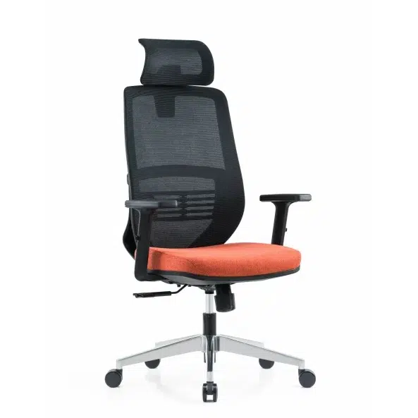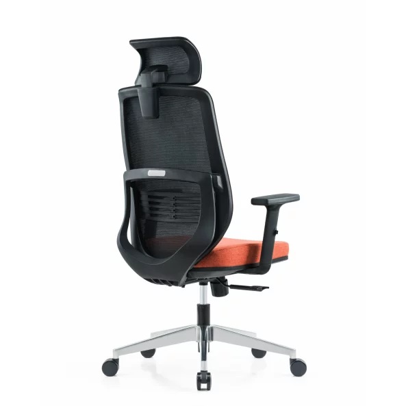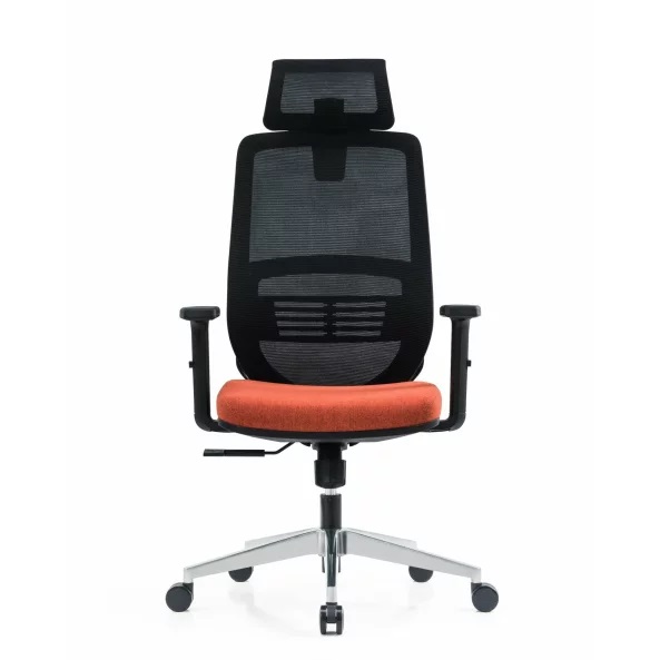 Офис стол 920А се отличава със своя модерен дизайн и отлична функционалност. Седалката в оранжево добавя нотка цвят и стил, елегантно контрастираща със задната част в черно. Той е проектиран да осигури максимален комфорт при продължителна употреба, като фиксираната лумбална опора гарантира правилна и здравословна поза за гърба. Подлакътниците също са регулируеми, което позволява настройка според предпочитанията на потребителя, като по този начин се предотвратява напрежението в ръцете и раменете. Регулируемата тетивка допълва ергономичния дизайн, като осигурява допълнителна опора за врата и главата, което гарантира оптимален комфорт през целия работен ден.