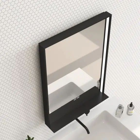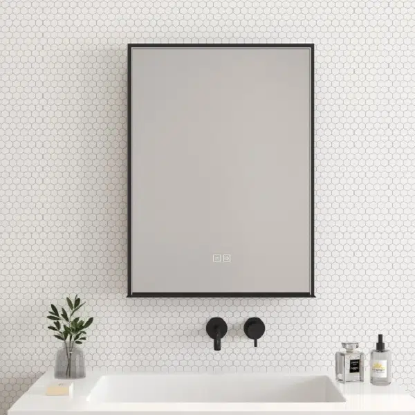 Огледало за баня ENZO ще ви изненада със своя модерен дизайн, изчистена черна рамка и вградено LED осветление, то съчетава елегантност и практичност. Благодарение на сензорното управление и антизапотяващата функция (antifog), огледалото остава винаги кристално ясно, дори след дълъг душ.