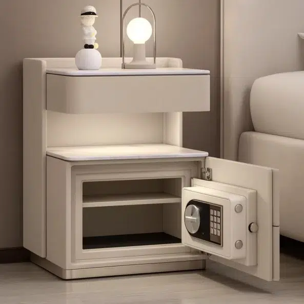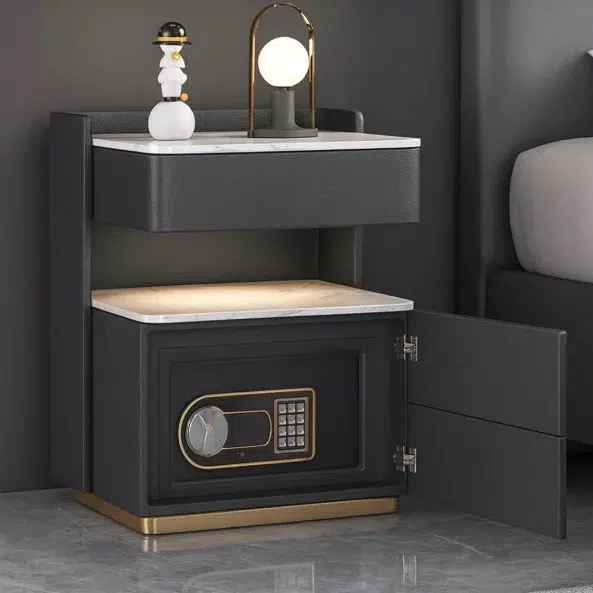 Smart нощно шкафче M3118 е създаден, за да внесе комфорт, сигурност и елегантност във вашата спалня. Съчетавайки модерен дизайн с усъвършенствани функции, то предлага не само практично място за съхранение, но и технологии, които улесняват и правят по-сигурен ежедневния живот.