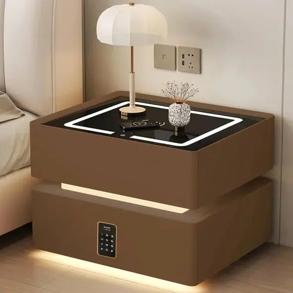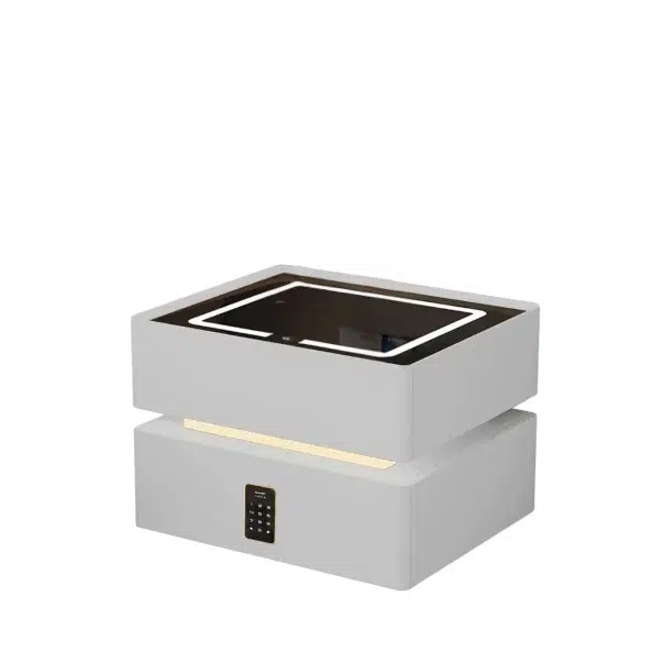 Smart нощно шкафче M3119 ще добави стил и функционалност в спалнята си с това нощно шкафче, което комбинира най-новите технологии с модерен дизайн. Благодарение на Smart нощно шкафче M3119 ще можете да зареждате устройствата си бързо, настройвайте LED осветлението, наслаждавайте се на удобството на сензора за нощна светлина и съхранявайте ценните си вещи в безопасност с кодирано заключване.