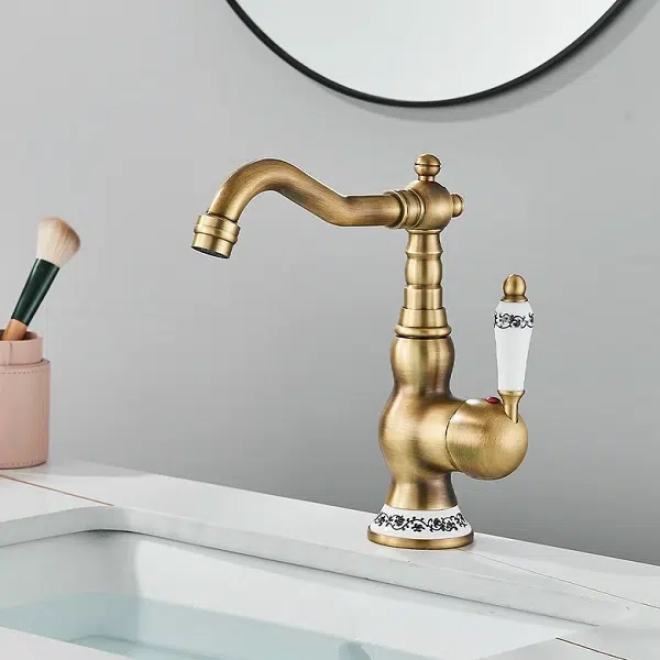Смесител за баня Антик ще предаде на банята ви изисканост и чар. Изработен от масивен месинг с антично покритие и фини керамични орнаменти, той съчетава класическа естетика с модерна функционалност.