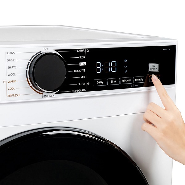 - Функции: Обратно въртене; Защита от деца; Сензорно отчитане на теглото, Сушене с по-малко гънки, UV Дезинфекция