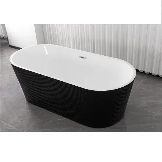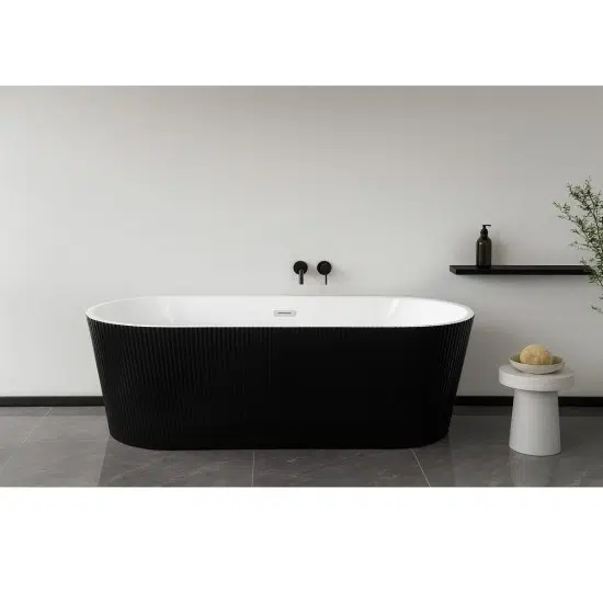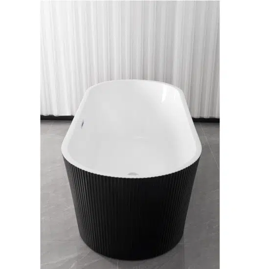 Свободностояща вана Reno е с елегантен черен акцент за модерната баня. Тя впечатлява със своя модерен дизайн и стилен контраст между черния външен корпус и бялата вътрешна част. Тя се превръща в централен елемент във всяка баня и създава усещане за лукс и спокойствие.