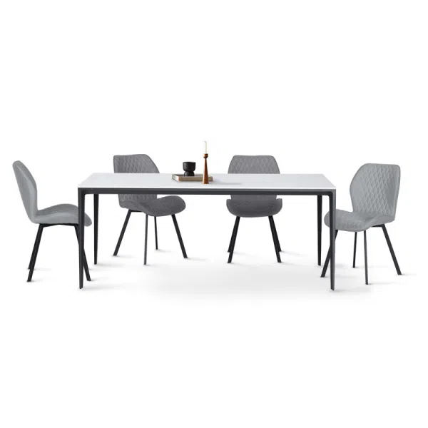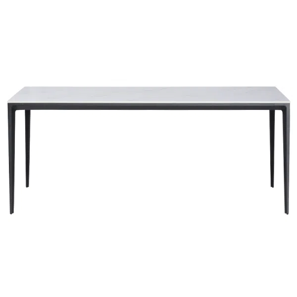 Трапезна маса DAMIAN се отличава с изчистен дизайн. Правоъгълният плот с размери 180 см x 90 см има специално покритие, което го защитава от надраскване, влага и UV лъчи. Това позволява използването на модела и на открито. Алуминиевите праховобоядисани крака и плотът със специално покритие позволяват още едно приложение на DAMIAN – за открити пространства като тераси, веранди и т. н. Благодарение на допълнителната си обработка масата е защитена от влага и ръжда, а плотът е устойчив на надраскване и UV лъчи. Трапезна маса DAMIAN е готова да Ви служи дълги години, защото визията ѝ няма да ви омръзне, а комфортът и възможността да се използва както в закрити помещения, така и на открито ще ви накарат да я заобичате.