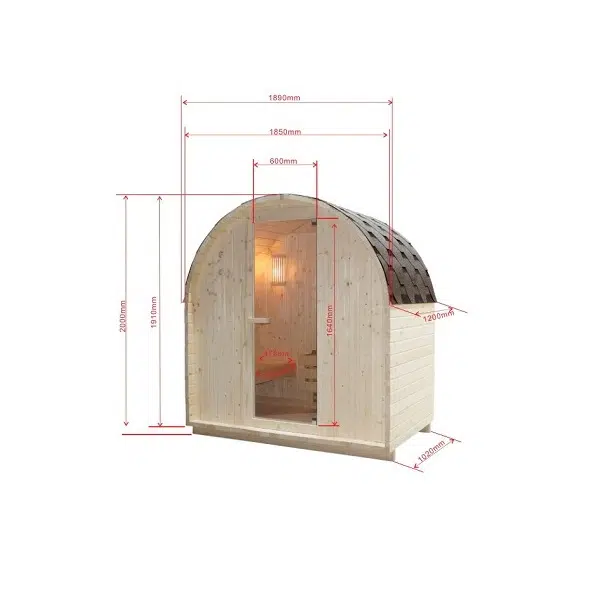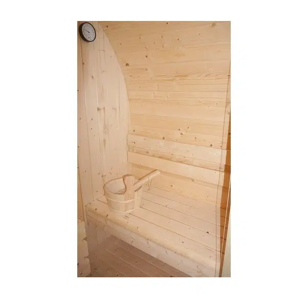 - Аксесоари: Нагревател за сауна, включително камъни за сауна, кофа, черпак, термометър, пясъчен часовник