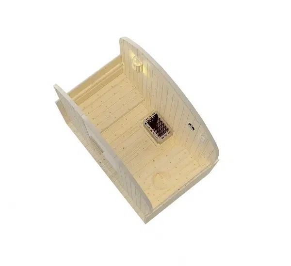 Сауната е изработена от висококачествена смърчова дървесина, която придава естествен и елегантен вид. Дървесината създава приятен вътрешен климат, задържа топлината ефективно и осигурява отлични изолационни свойства, което допринася за комфортна и релаксираща сауна сесия.